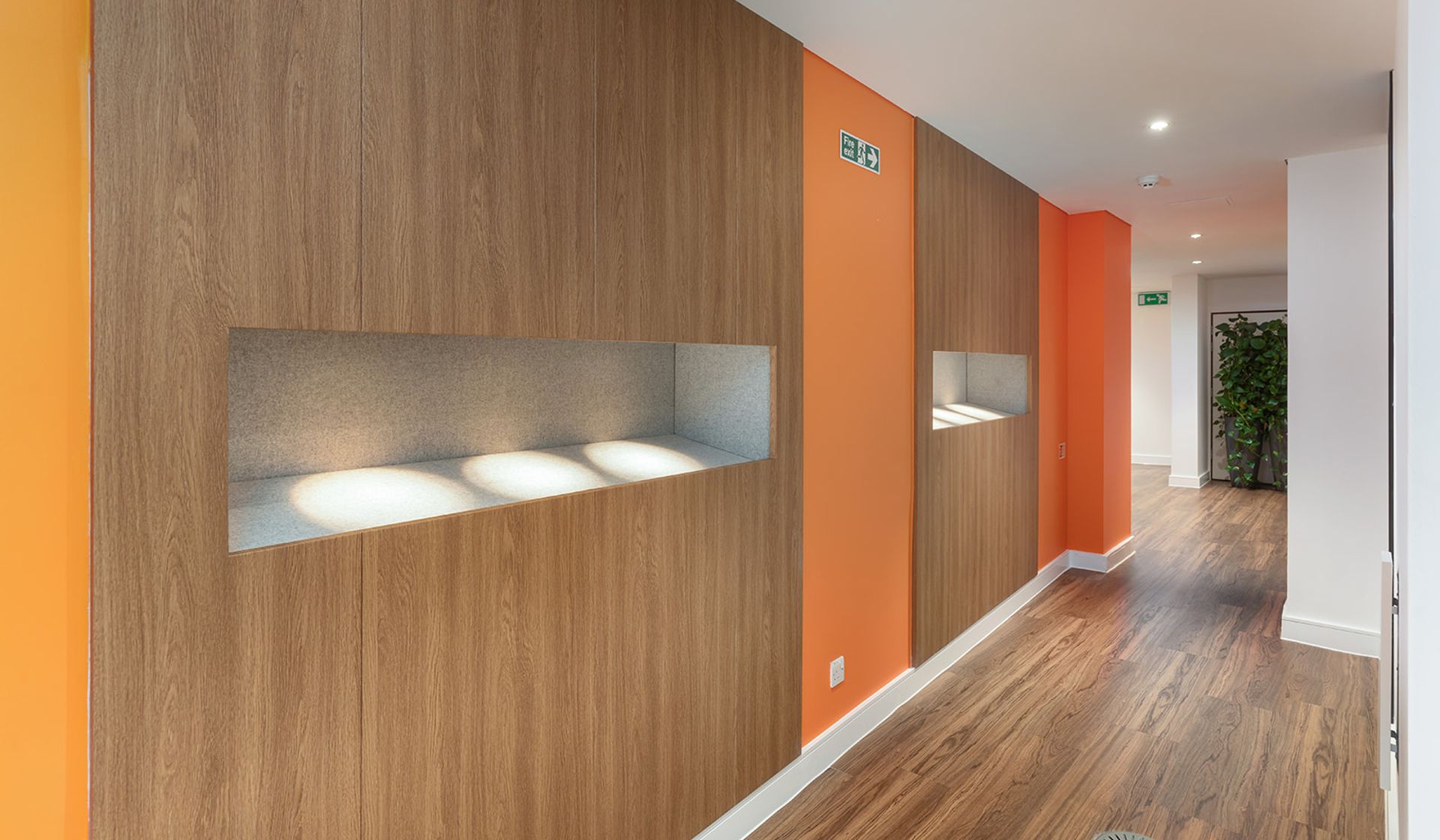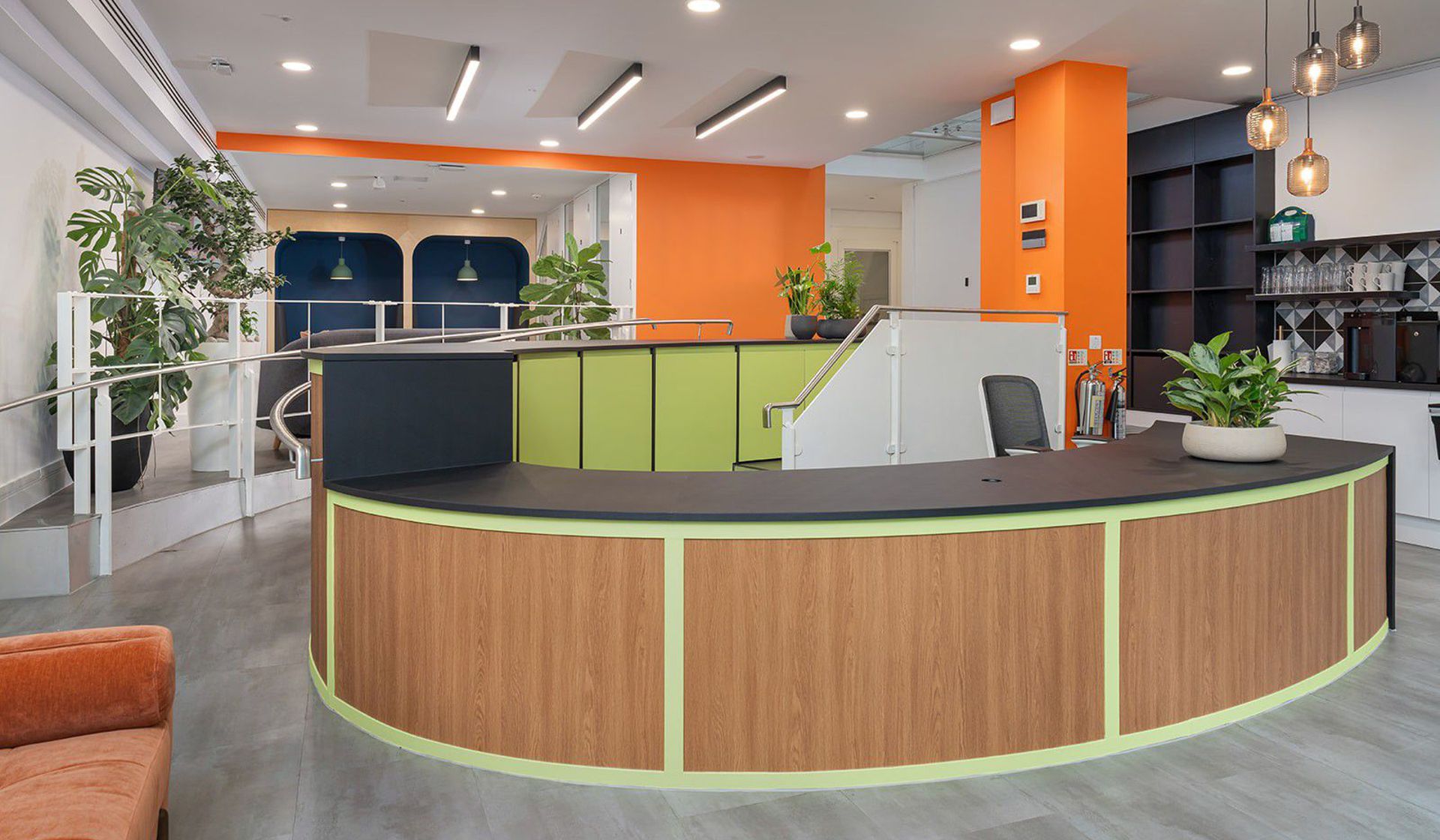 This workspace upgrade focused on creativity, sustainability, and minimal disruption. Instead of a full refit, the client opted to upcycle and wrap existing fixtures — reducing waste while achieving a bold, high-impact finish.